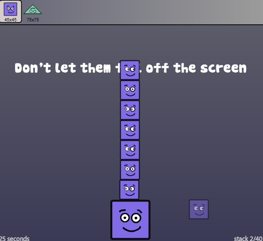 ルールは簡単、クリックすると上に表示された図形をどんどん積んでいきます。崩したら負けなんで注意してくださいね。
