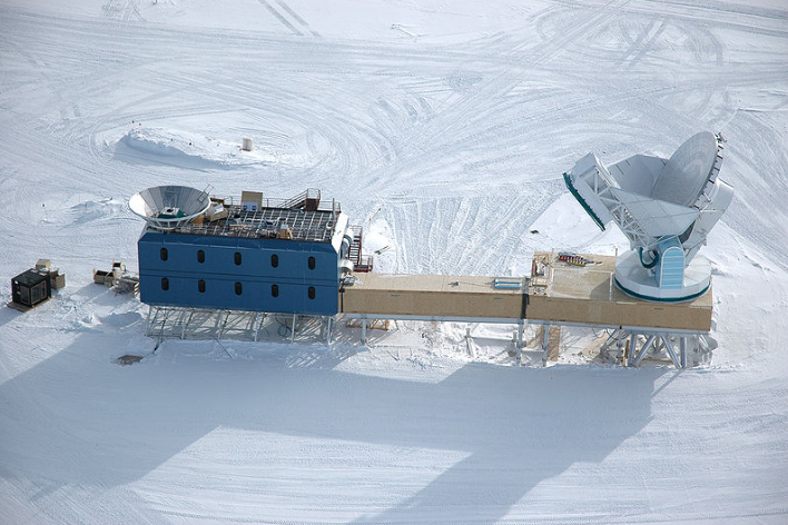 南極点望遠鏡がある南極大陸内陸部は、標高が高い、気温が低い、きわめて乾燥している、1年の半分は日が昇らない等の点で電磁波の観測に適した場所なんだそうです。